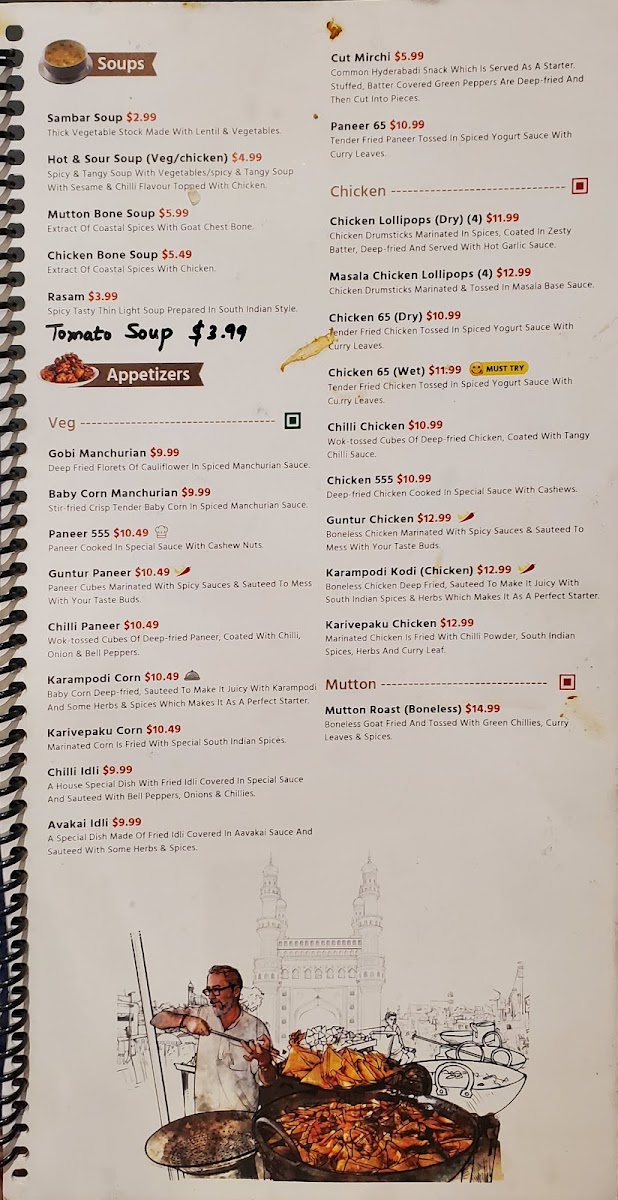 When it comes to the menu, you're in for a treat with the restaurant’s diverse offerings. For starters that will awaken your palate, try the Chicken 65—a tantalizingly spiced appetizer that never fails to impress. The Gobi Manchurian, boasting deep-fried cauliflower in a delectable Manchurian sauce, is another crowd favorite, perfect for those looking to savor Indian-Chinese flavors.