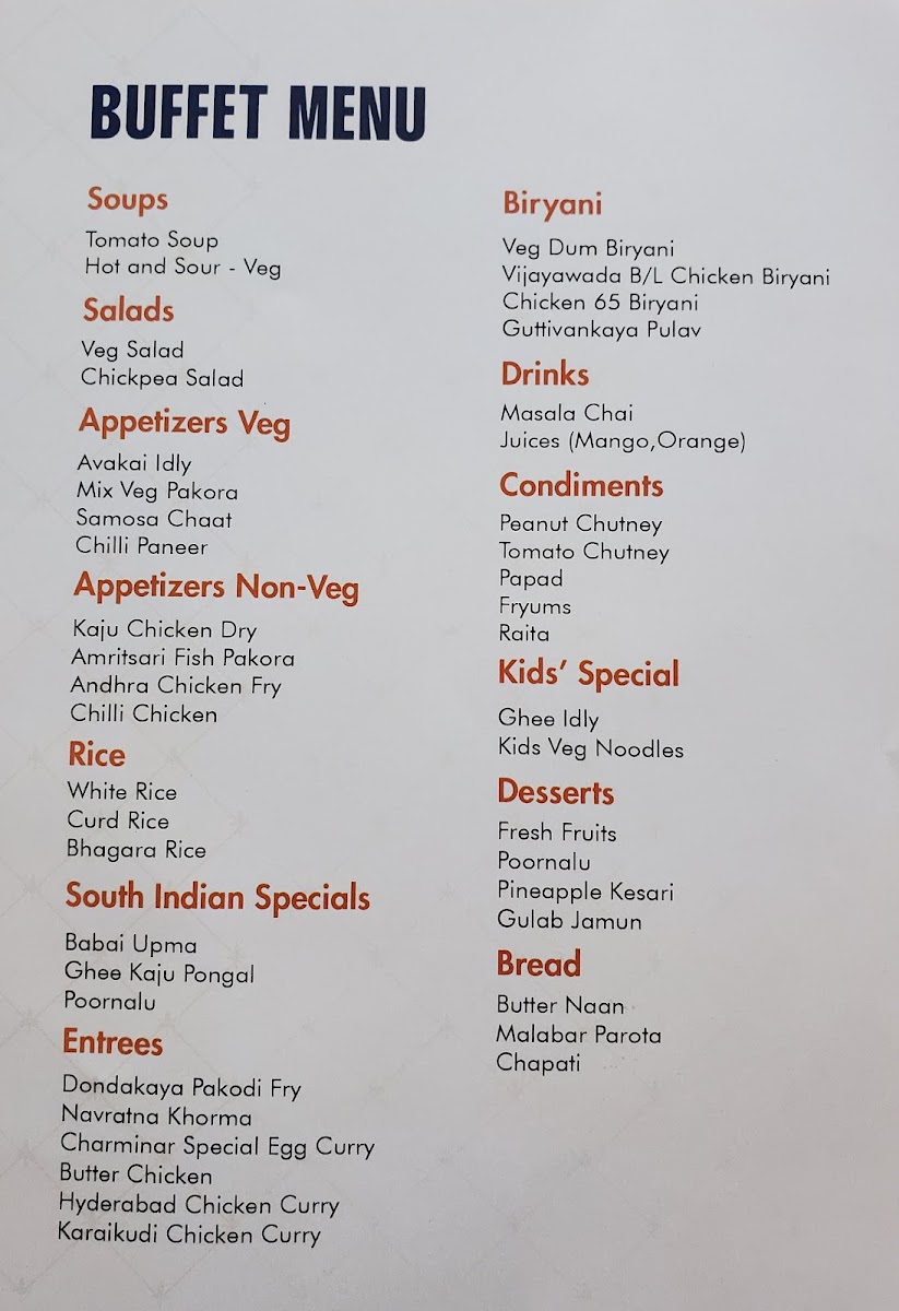 As you step inside, the warm ambiance welcomes you, creating the perfect backdrop for your dining experience. The spacious seating arrangements assure comfort, and the decor offers a charming yet traditional Indian vibe. At Charminar, each meal is not just food; it’s an experience crafted with meticulous attention to detail, ensuring every guest feels at home.